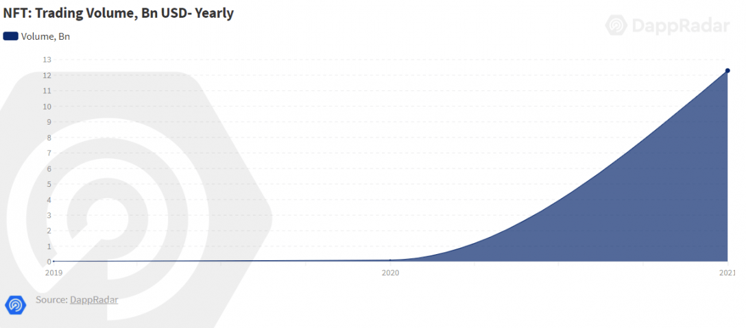Figure 1. NFT trading volume increase from 2020 to 2021